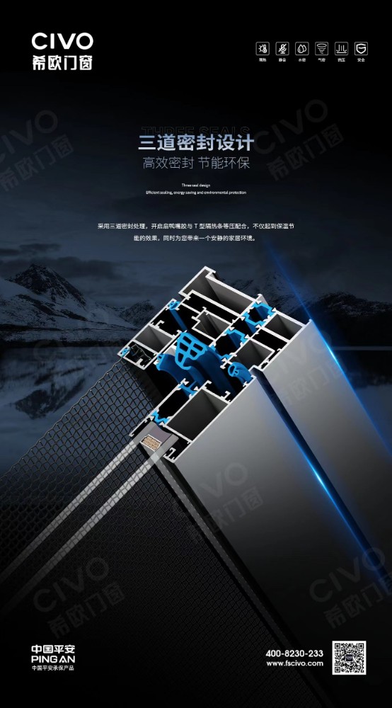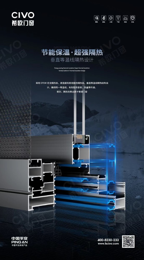 垂直等溫線設計,清除冷橋,提高隔熱保溫性能。加上多道密封膠條,節能低碳。