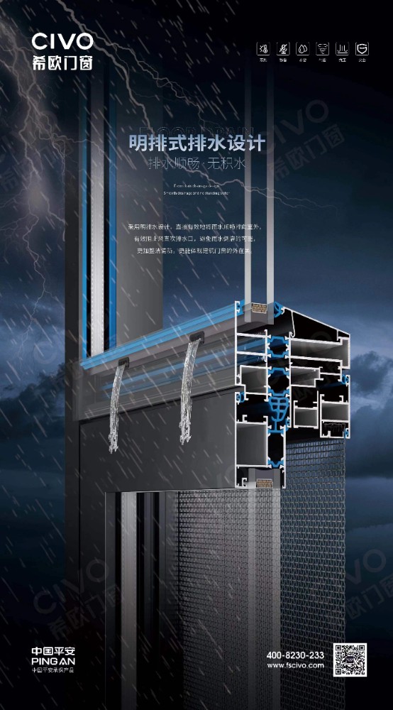 疏:室外側滲入腔體的雨水需要加快排出,CV-T20采用明排式排水,排水快速,減少積水滲漏